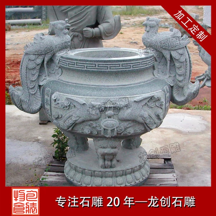 這個流程也是在制作石雕香爐時必不可少的。一座普通的室外石雕香爐,常用的雕刻技法有圓雕、浮雕、線雕,甚至是透雕,這就必須要根據實際的需要來進行抉擇了。為了能夠增加石雕香爐的觀賞效果,可以對石雕香爐的各個部分,進行磨光處理。從而增加石雕香爐,雕刻圖案的層次感和立體感,使之整體的效果更加的和諧、美觀。