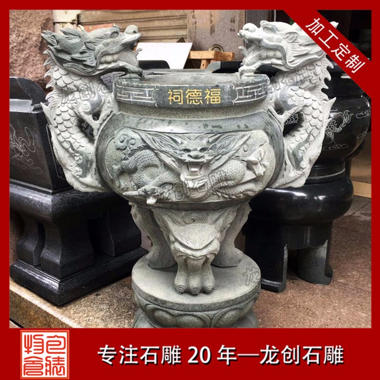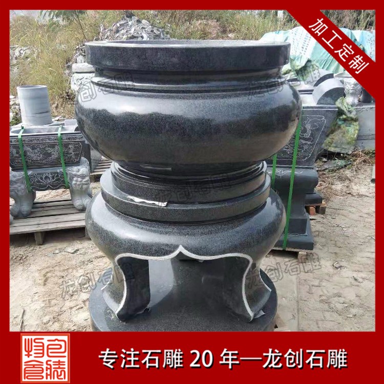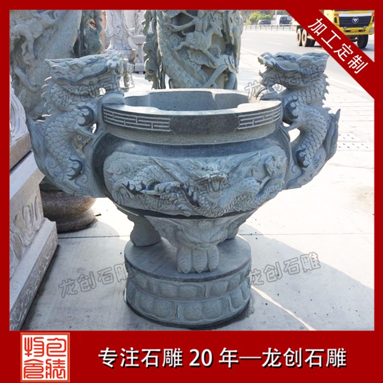 大型的石雕香爐,并不是一整塊石頭制作出來的,而是類似與石燈、石塔一樣,是由多個不同的石雕香爐部件,共同組合堆疊起來的。相比石燈、石塔不同的是,石雕香爐的主體部分是必須要掏空的。在保證石雕香爐主體運輸,并且能夠正常使用的情況下,其香爐挖得越深越好。