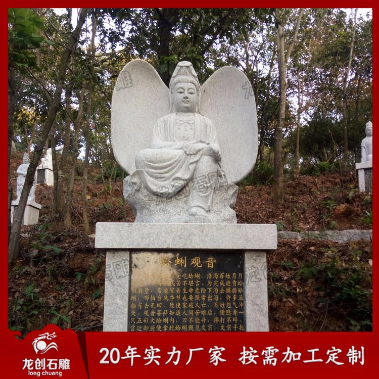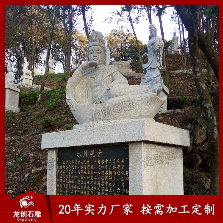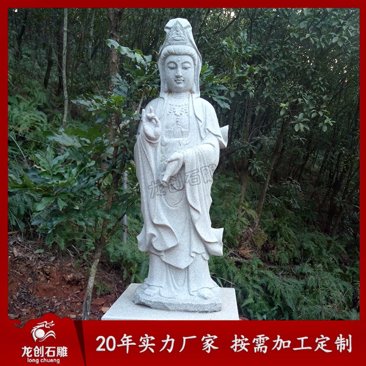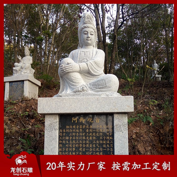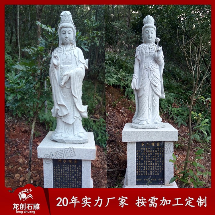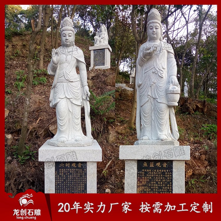 觀音菩薩像在制作上有千般面相,具體有三十三化身,而觀世音菩薩石像的造型都是從這三十三種變化而來,又稱為三十三觀音。在人們的心目中,她與普通百姓很貼近,是解危救難的救星,慈祥的女神,美好的化身,高潔的圣母。
