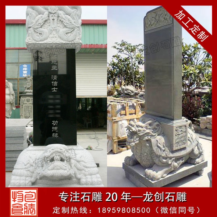 造型:龜馱碑具有獨(dú)特的赑屃造型,而功德碑的形式則更加多樣化,可以根據(jù)不同的需求進(jìn)行設(shè)計(jì)。