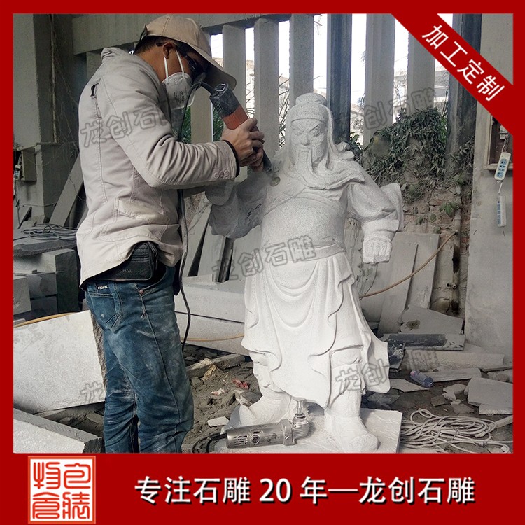 雕刻過程更是獨具匠心。從整體構(gòu)圖開始,雕刻師們會根據(jù)石材的形狀和大小,精心設計關公的姿態(tài)和神情,力求展現(xiàn)出關公的威武與莊重。在粗雕階段,雕刻師們運用各種大型雕刻工具,大刀闊斧地鑿出關公像的大致輪廓,展現(xiàn)出其矯健的身姿和威嚴的氣勢。