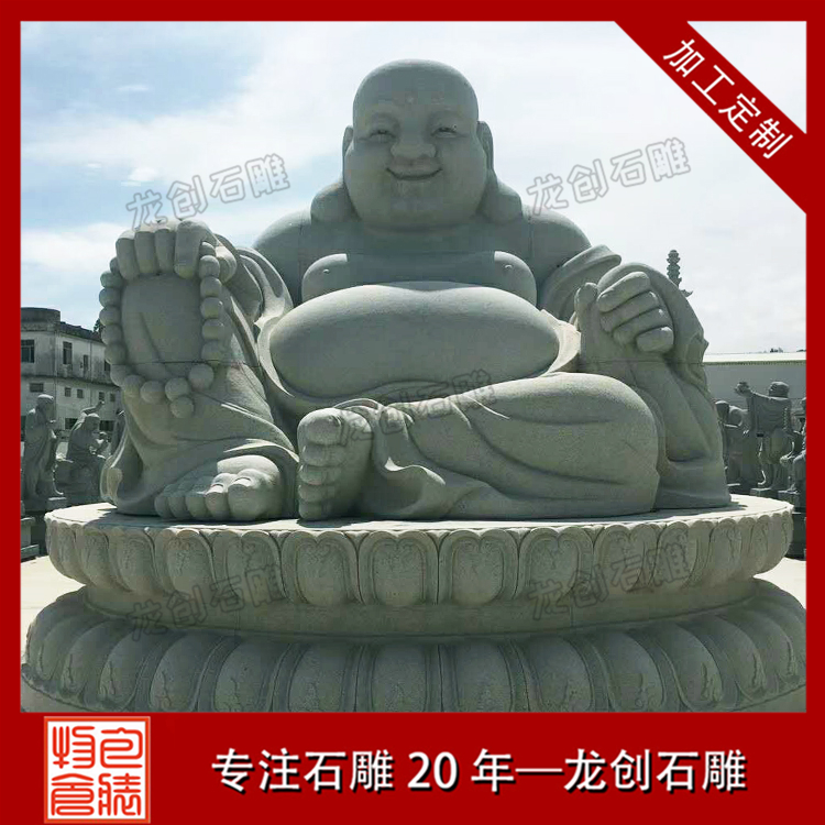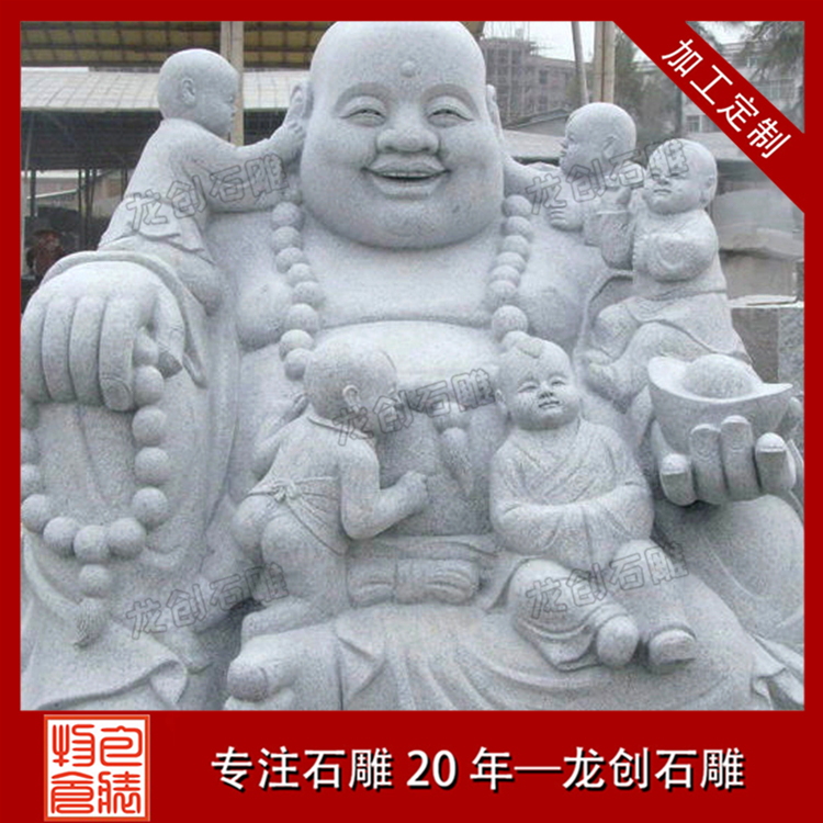 石雕彌勒佛手中還有一乾坤袋,可容天下萬物,無所不有。佛爺以慈善為本,普度眾生,常以袋中之物施舍眾生,救苦救難,尤其是金銀財寶。所以世人若求消災(zāi)解難,富貴平安,那一定要在家中供奉彌勒佛。當(dāng)然無論你是否得到你想要的東西,都應(yīng)該笑對人生,做一個像佛爺一樣的樂天派。所謂一笑解千愁。人們見此佛像,往往受他那坦蕩的笑容感染而忘卻自身的煩惱。很多寺院的彌勒殿還有這樣一幅對聯(lián):大肚能容,容天下難容之事;開口便笑,笑世間可笑之人。