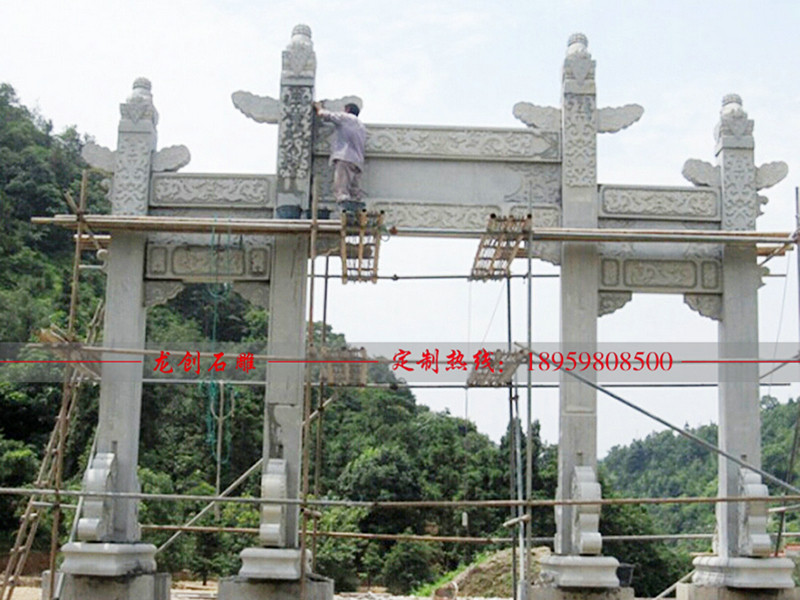石雕石頭牌坊建筑中的石牌坊雕刻集合傳統技藝,將寓意美好吉祥、幸福安康等各種事物與民間技藝融為一體,從這些石牌坊浮雕、和石牌坊獅子雕刻部件不僅能夠看出人們對美好生活的向往與追求,也映射出傳統藝人的高超技藝。石雕石頭牌坊不僅體現了建筑的工藝特色,其建筑及地理位置也十分講究風水,實際上慎重考慮建筑外部自然環境的選擇,而后又發展人為創造理想的小環境。