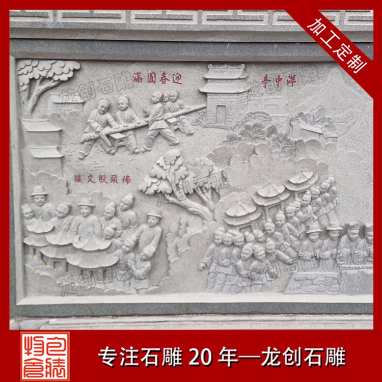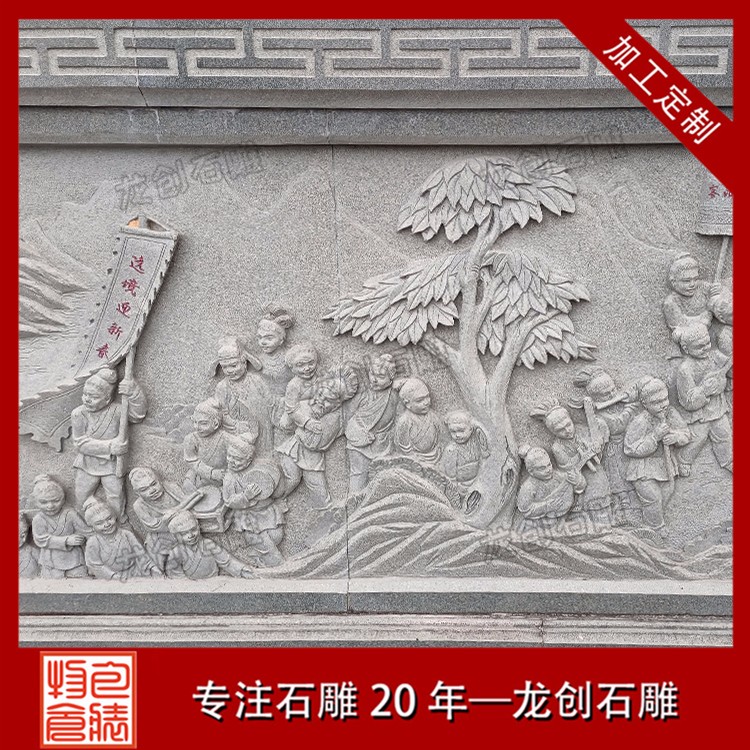 關于室外文化墻浮雕多少錢,首先要確定浮雕的圖案內容,再找到合適的廠家溝通,確定圖案的可實現性。第二步是要明確選用的石料,盡可能有實物樣品做參考,這樣的話買賣雙方都好溝通。其次就是雙方確認意向,下單安排制作了。這個過程中,買方要把所有能想到的要求提出來,廠家則根據消費者的需求,從石雕制作的專業角度給與一定的建議。