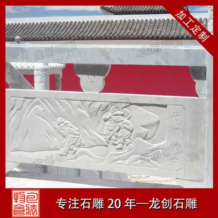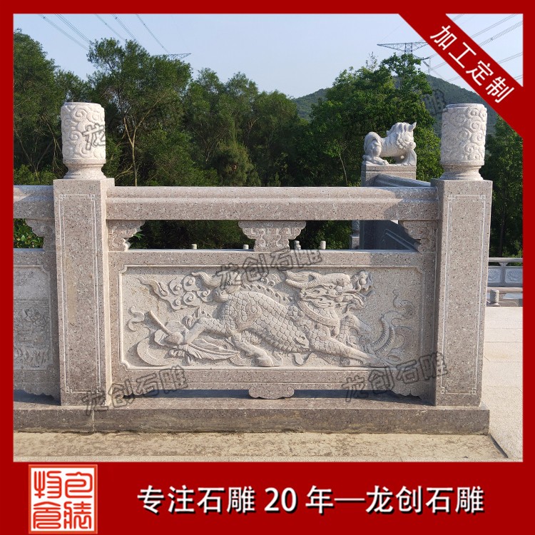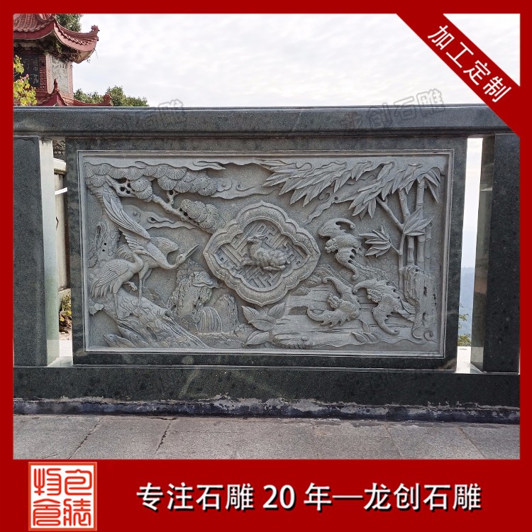 石材浮雕是一種在天然石材上表現浮雕技法的工藝品,在人們的生活中隨處可見。如別墅墻浮雕、寺廟浮雕、石材浮雕欄桿等。今天我們要了解的是石材浮雕欄桿制作及雕刻圖案,現在石欄桿和浮雕的結合使安裝區域多了一道風景線。