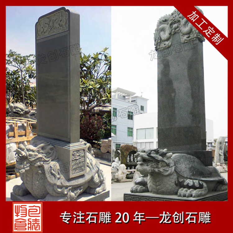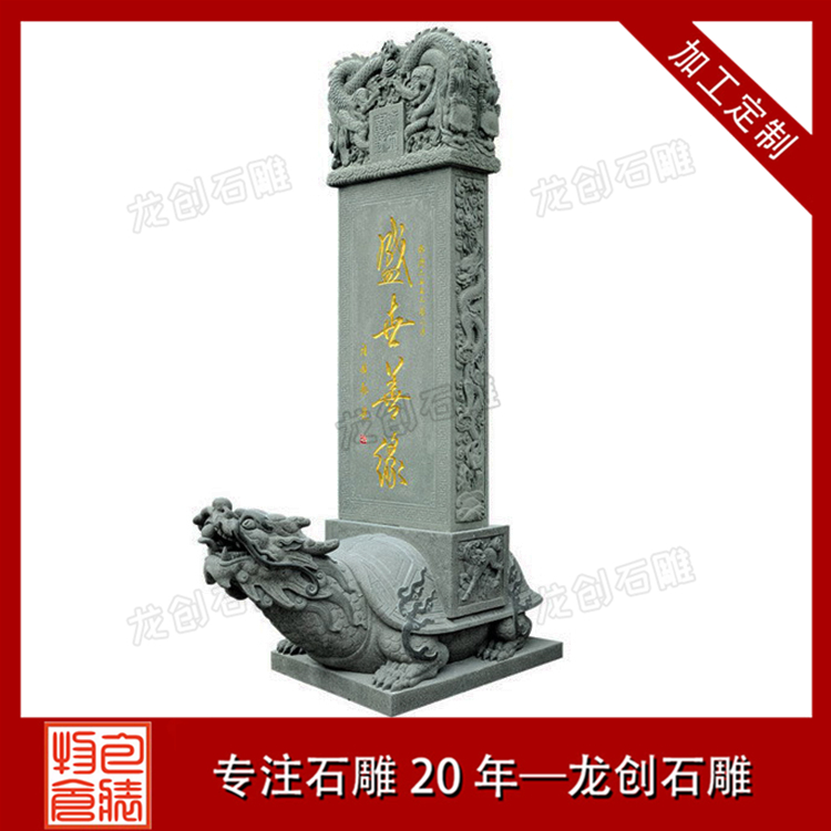 龜馱碑一般采用天然石材制作,常見的材質有大理石、花崗石、青石等。這些石材都具有堅硬、耐磨、耐久的特性,能夠經受住風吹雨打和時間的考驗。同時,它們也具有良好的雕刻性能,可以雕刻出精細的圖案和文字。