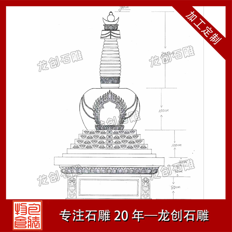 設計藍圖繪制,是創(chuàng)意與技藝的深度融合。資深設計師們深入研究佛教文化、古建筑美學以及當代景觀需求,以手繪與數(shù)字建模相結合的方式,反復推敲石塔的形態(tài)、比例與裝飾細節(jié)。從塔基的穩(wěn)固設計到塔身的層次布局,從檐角的靈動勾勒到塔剎的莊嚴呈現(xiàn),每一處線條與圖案都凝聚著對文化傳承與藝術創(chuàng)新的不懈追求,確保設計方案既具深厚文化底蘊,又能引領時代審美風尚。