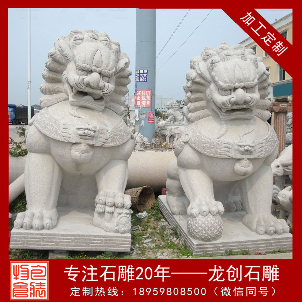 石雕獅子在民間又稱“石獅子”,是以材料分類的美術品種。以大理石、青石、漢白玉、花崗巖等為材料,以圓雕為主要造型手法。石獅子按不同的應用范圍可分為——建筑構件石獅、建筑小品石獅與陳設用品石獅三大類。其廣泛應用于民間石雕中。