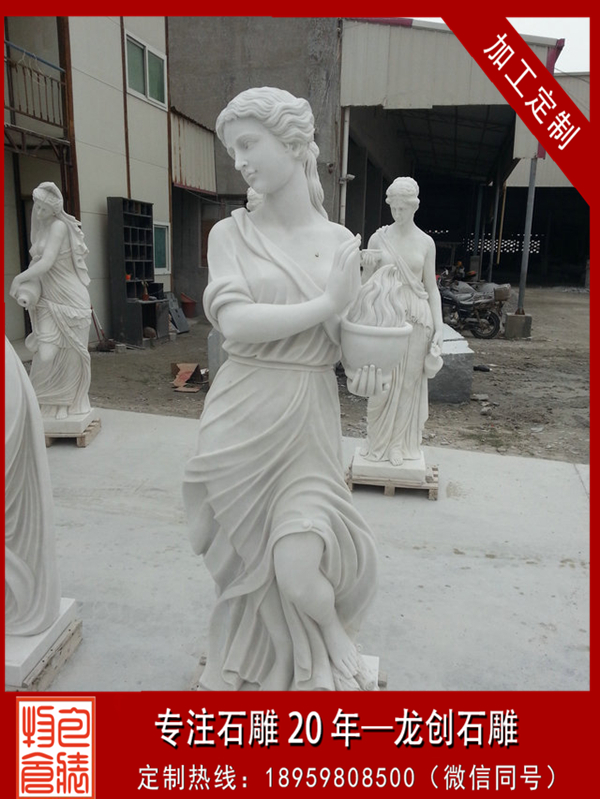 漢白玉西方人物雕塑顧名思義就是用漢白玉雕刻出的西方人物雕塑。漢白玉通體潔白,也用于雕刻佛像等,西方從古希臘時(shí)代就用白色的大理石作為人像雕刻材料。在日常生活中,我們經(jīng)常能看到色調(diào)淡雅、紋理清晰、圖案美觀的大理石。人們常用大理石來(lái)裝飾墻壁、制作桌面及各種文具和工藝品。北京故宮各大殿臺(tái)基周?chē)臋跅U,就是用純白色大理石制作的。這種純白色的大理石叫作漢白玉。