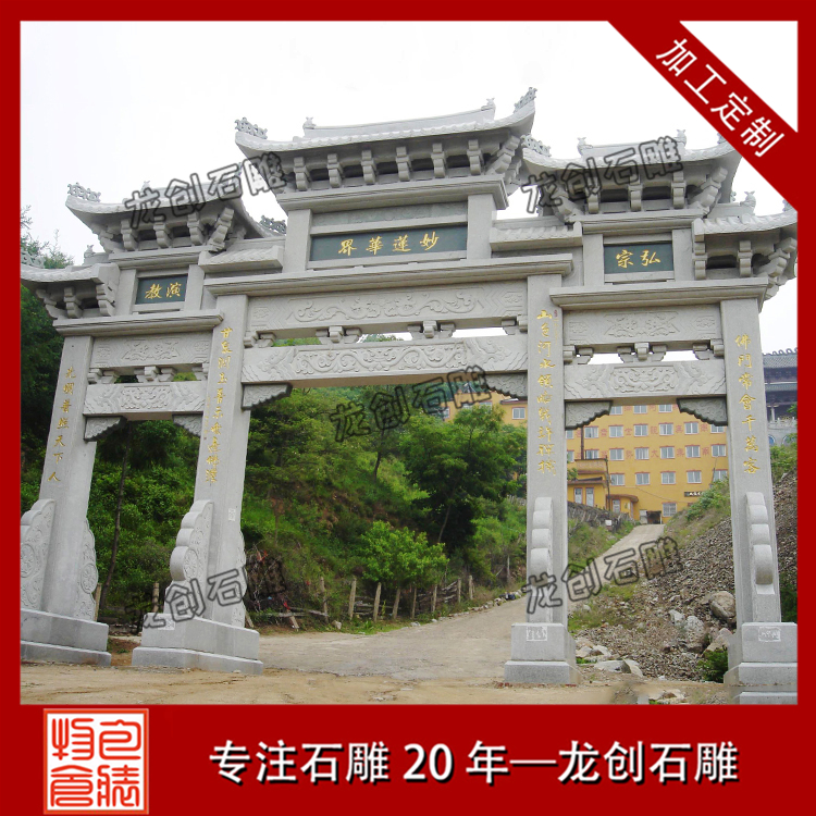 石雕山門牌坊作為現(xiàn)代成功標志的古建筑文化代表,被全國各地的農(nóng)村,村莊,寺廟,景區(qū),公園各大建設(shè)所大量使用,石雕牌坊有著與眾不同的外觀形態(tài)、多種多樣的社會功能、古老悠久的歷史淵源、豐富深厚的文化內(nèi)涵,可以說是華夏大地上的一道獨特的人文景觀。