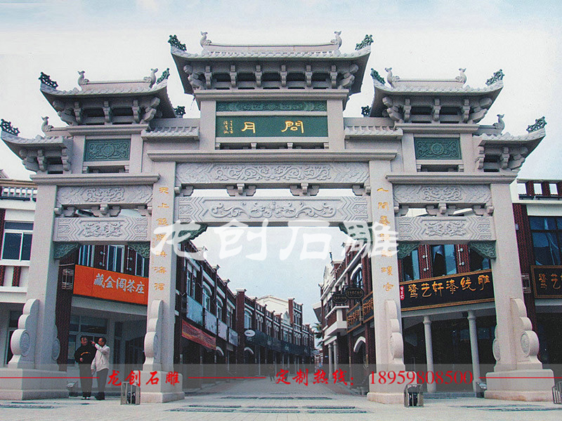 石雕石牌坊,在我國有著長久的歷史文化,其不只在歷史中占有共同的位置,就在當代依然具有強大的生命力。中國石牌坊延綿千載,數以萬計,遍及在全國各地的鄉(xiāng)村、祠堂、寺院、道觀、景區(qū)、園林、陵園、墓地、街巷、路橋等處,真是品種繁多、蔚為壯觀,展示了博大精深的華夏文化。石雕牌坊構造緊湊勻稱,形貌生動,手法細膩,文化內涵深沉,雕琢精麗工巧,一派渾實勁健的藝術特征,流顯露與時期不太相符的藝術光榮,是我們龍創(chuàng)石雕雕琢工匠制造。